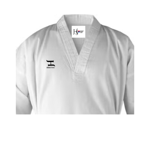Taekwondo Uniform – HIRAMU (Dobok)-Zwarte V-kraag # rode-zwat V-kraag